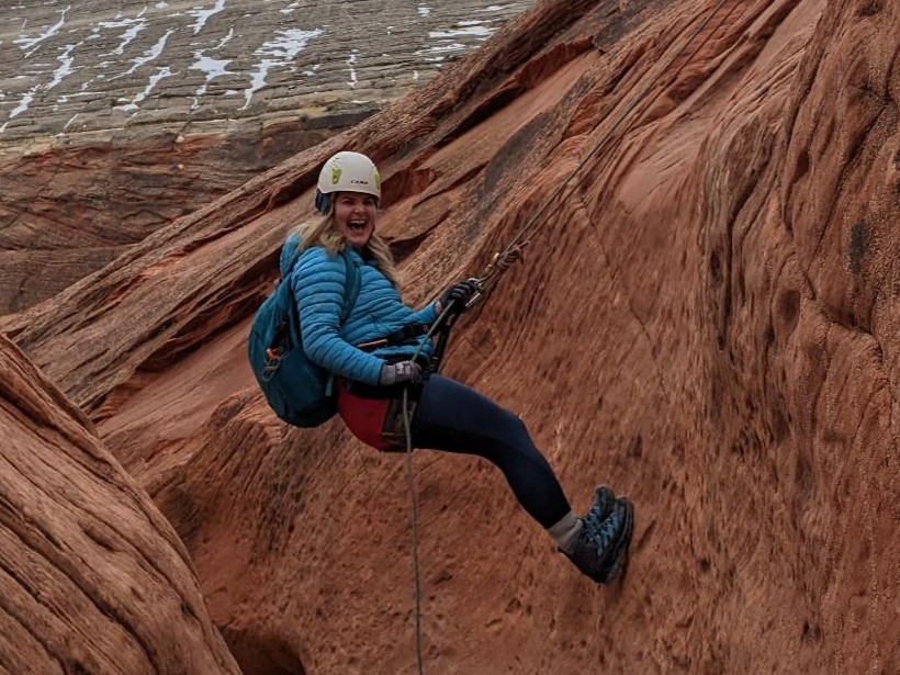 Even when she's not working, Derksen is embarking on exciting escapades outdoors, from hiking and skiing to climbing and canoeing—any activity she can share with friends and have some adventure.